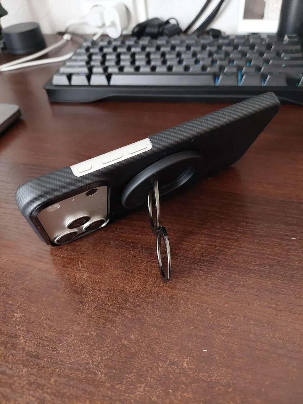 The thinnest and lightest MagSafe compatible aramid fiber phone ring.